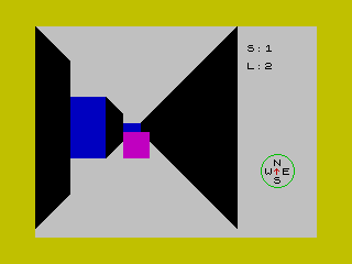 Laddder (a.k.a. Lader3D) is, as the name implies, the... er... "3D" sequel to the Lader platformer. It's a pseudo-3D game for the Sinclair ZX Spectrum and Commodore 64 home computers, inspired by the classics 3D Monster Maze (Sinclair ZX81) and Treasure Hunt (PC/DOS).